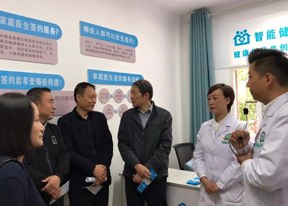 在慢病管理和家庭醫(yī)生簽約室,認真聽取了新城區(qū)“彩虹工作管理法”“家庭醫(yī)生直通車”等創(chuàng)新舉措,提出“抓好典型,強化示范、全面推開”的殷切希望,并對新城社區(qū)衛(wèi)生服務(wù)工作給予高度評價和認可。